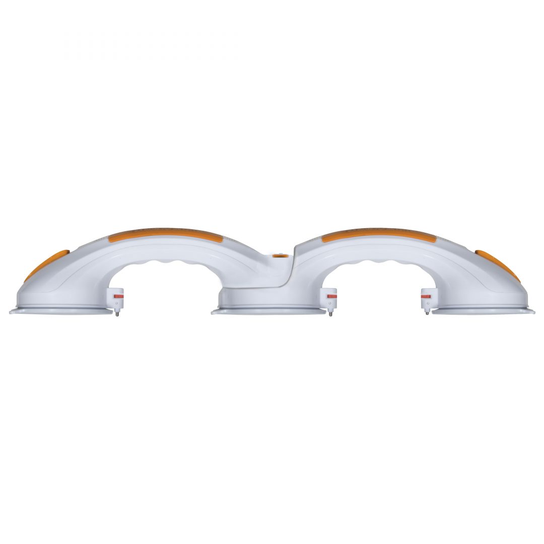 This 19.75″ suction cup grab bar by Drive Medical is a dual rotating grab bar, allowing you the added versatility of adjusting the bars to multiple angles. It can be installed and removed without the hassle of tools or a service professional, allowing the product to be used right out of the package. The large suction cups provide an extremely strong hold. Release levels make attaching and detaching the bar a cinch. A color indicator shows you whether installation was “safe secure” or if you must “re-affix” the grab bar. The product is guaranteed to not damage your property. The suction cup is 4″ in diameter and must make full contact with a smooth surface without breaking grout.