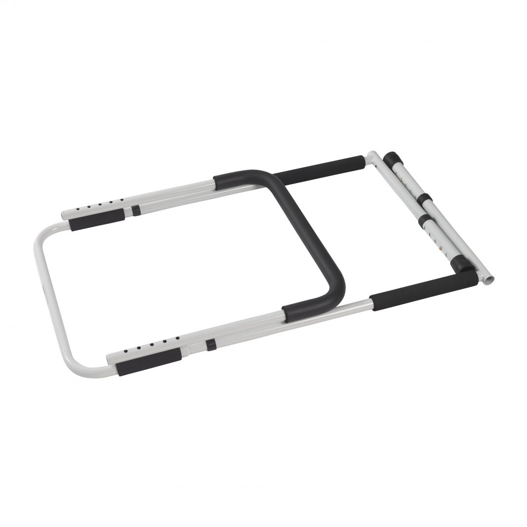 The Adjustable Height Home Bed Assist Handle from Drive Medical provides assistance for getting in to and out of your home-style bed. You won’t have to worry about the fit since the handle attaches to either side of the bed. It simply slides underneath the mattress and includes an added feature on the base bar, “no-slip foam” that helps hold the bar in place. The removable handle is part of an all steel, chrome-plated construction that is strong, solid and easy to clean. The unit arrives in three pieces and can be assembled quickly and tool-free, and it also can be adjusted flat for easier storage.