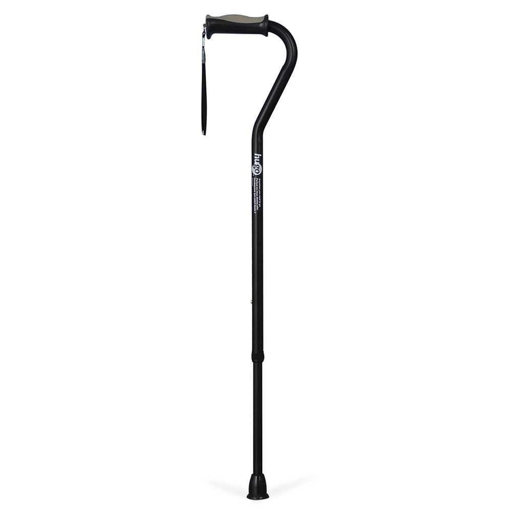 • Hugo’s Offset Handle Cane has a shock absorbing cushion-top handle with reflective strap for added night time safety