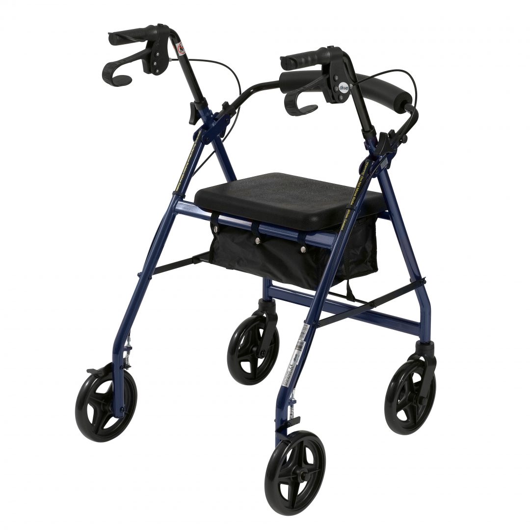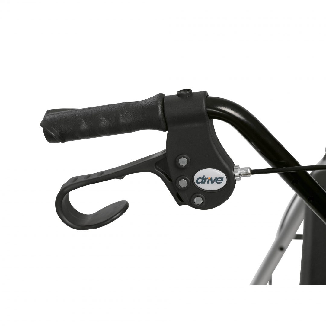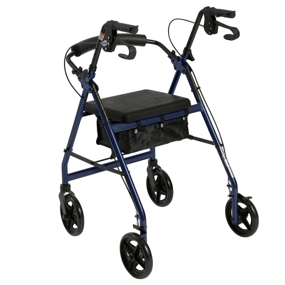 If you’re seeking a safe, convenient aid to improving your daily mobility, a Rollator can be the ideal solution. Wheels make a Rollator a superior option over a standard walker, eliminating the need to lift the device and allowing you to walk with an easy, smooth gait. Plus, Rollators are better for travelling over uneven, outdoor terrain, making them great for your active, busy lifestyle. And with the built-in seat found on a Rollator, you’ll always have a convenient place to rest. Drive’s Aluminum Rollator with Fold Up and Removable Back Support is the perfect unit to suit your needs and your style. It’s designed and built for maximum comfort, durability, and ease of use with quick folding ability and simple handle height and angle adjustment. It has a seamless padded seat for maximum seated comfort. The backrest is also padded and the large wheels ensure smooth travel over a variety of different terrains. It even has a convenient, zippered pouch for privately and securely carrying items with you on the go.