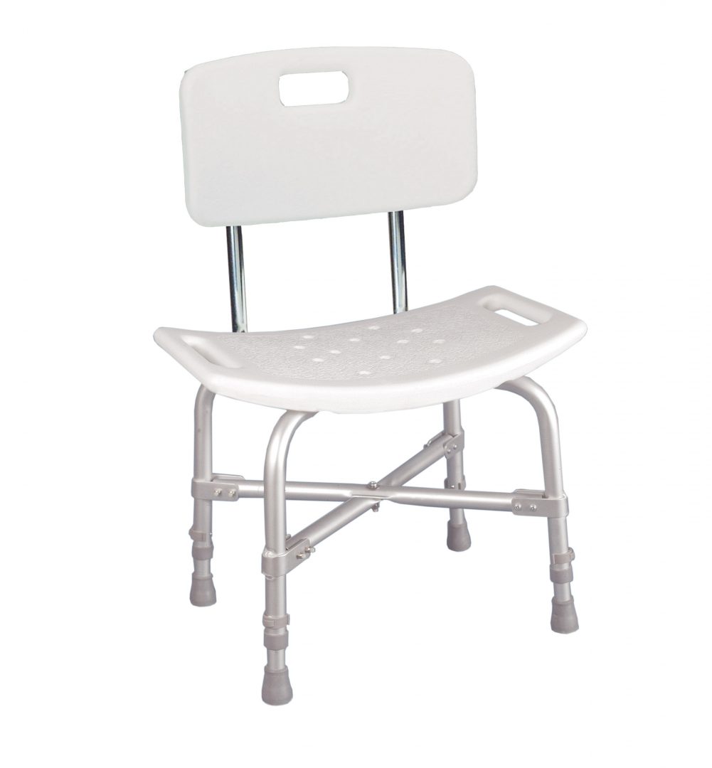 With a 500-pound weight capacity, this bariatric bath bench from Drive Medical is strong and sturdy. A cross brace attached with aircraft style rivets provides dependable strength. Available in two styles with and with out back this bath bench provides a feeling of security. The blow molding on the back and seat are contoured to provide extra comfort. Drainage holes in the seat reduce slipping, while adjustable height legs ensure a proper fit. The aluminum frame is lightweight, durable and corrosion proof.