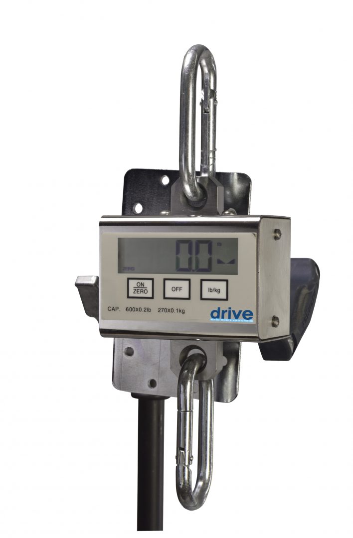 This digital bariatric scale by Drive Medical is for use with a patient lift. It operates with most manufacturers lifts and features a weight capacity of 600 pounds.