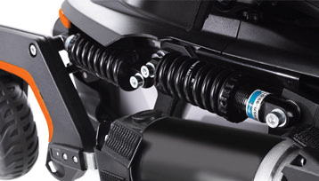 A true fully independent suspension allows the F5 Corpus VS to absorb everyday terrain and obstacles with minimal translation to the user. Our updated shocks are fully adjustable with an included 4mm tool, all while the user remains in the chair. The ride quality is like nothing you’ve experienced in a power wheelchair before.