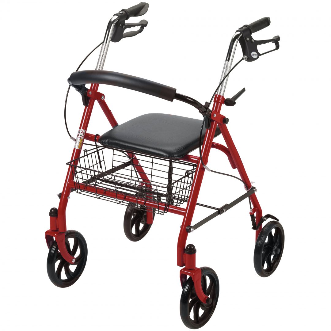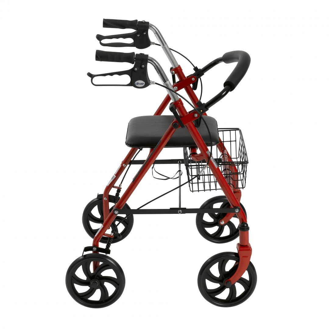 Supreme Durability, Safety and Quality In keeping with Drive Medical’s tradition of fine craftsmanship and unmatched value, this Four Wheel Rollator Walker with Fold Up Removable Back Support continues to lead the charge when it comes to design, quality and value.A mobility aid in a league all of its own, this walker comes highly recommended by those who seek strength, support, durability and comfort, all mixed with a touch of class. The Four Wheel Rollator Walker comes complete with a padded backrest which is hinged and is removable by folding it either up or down. It also arrives with comfortable seating along with a convenient carrying basket which you can use to store personal items.The 7.5 inch non-marring wheel casters are ideal for both indoor and outdoor use, as are the easy to use deluxe loop locks. But that’s not all; you also get ergonomic handles that can be adjusted according to your height, making the gripping of handles especially convenient and comfortable, while eliminating undue stress on hands and joints.With the Four Wheel Rollator Walker as your travel companion, there is no need to overstretch yourself, because this rollator doubles as a comfortable and welcomed chair, giving you an opportunity to rest and refresh yourself anywhere and at any time. Go ahead…Experience the Drive Difference Now!