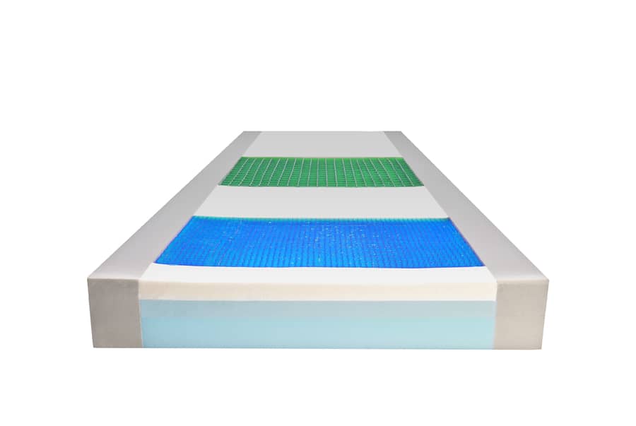This mattress features a high-density polyurethane foam base, 5 lb. memory foam core and an incorporated foam perimeter border for help with transfers and ADLs. The Single Zone option offers a 1” gel insert to target protection to the coccyx area with the reduction of peak pressure points. This helps to reduce skin tension and provides protection from shear when beds are articulated or elevated. The Dual Zone option also protects the heel area with a .75” gel insert for pressure relief, reduction of friction and shear and healing of stage I and II pressure ulcers.