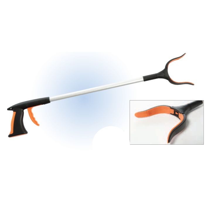 The Hand Held Reacher by Lifestyle Essentials comes with a lightweight aluminum frame that helps eliminate bending and stretching. Only 7 ounces of pressure required on the trigger to close jaws. Folding model folds flat for more convenient storage.