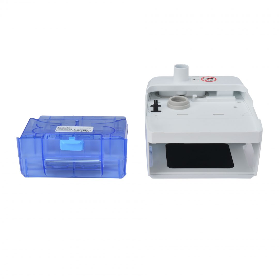 Use the optional heated humidifier to provide additional comfort and humidity for your sleep therapy. Built for durability, the water chamber has a stainless steel heat transfer plate and is constructed of Lexan to make it dishwasher safe. The humidifier chamber is easy to remove and designed to maximize humidity with a larger surface area. DeVilbiss designed the chamber to hold enough water for a full night’s sleep and along with the unique baffle design; the water chamber allows the airflow to collect more humidity. Even at the humidifier’s highest setting, you can still expect a full 8 hours of humidification.