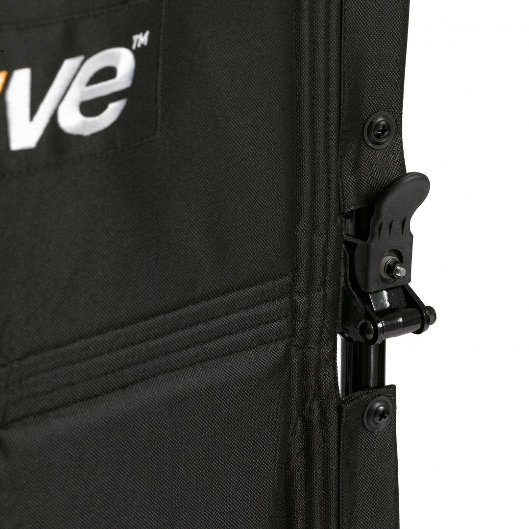 Aluminum casted back release hinge allows back to fold down for easy storage and transport