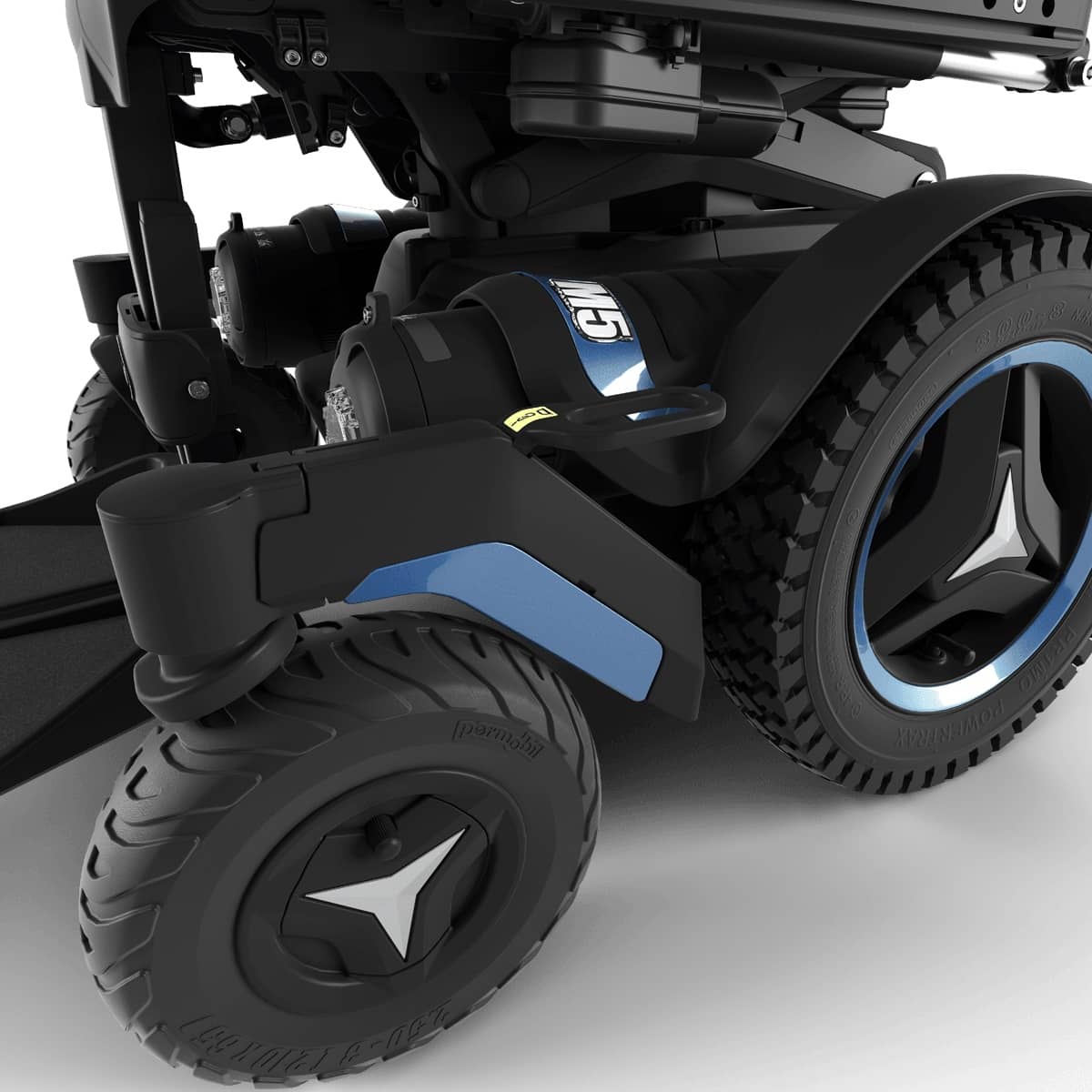 The rubber meets the road with our 8″ aggressive or standard caster options. The M5’s adjustment-free flutter damping device enables an intuitive driving experience even with a wide variety of drive controls. Finally, mid-wheel drive performance that lets you pivot like a pro.