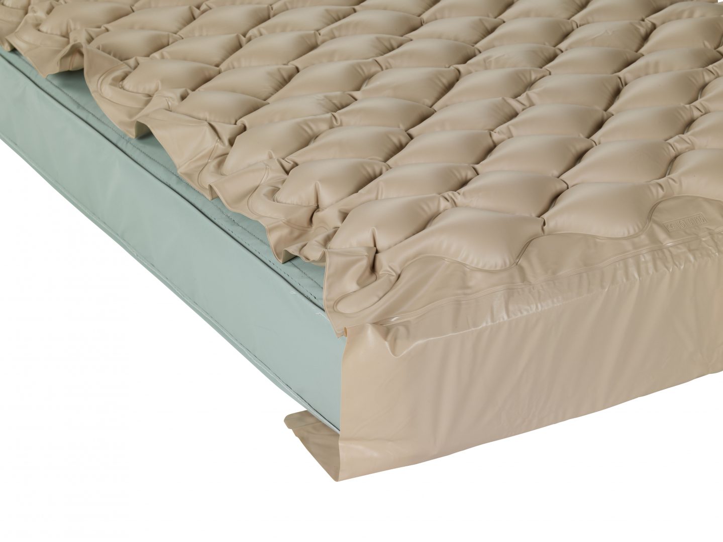 The Med Aire Alternating Pressure Pump and Pad System with Low Air Loss by Drive Medical provides alternating pressure and is designed to be used in the prevention, treatment and management of Pressure Ulcers. The bubble pad provides superior therapeutic treatment alternating which of the 130 individual bubble cells are inflated or deflated every 5 minutes, never placing too much pressure on any affected area. The overlay pad comes with two end flaps, ensuring that it remains secure on the mattress. The variable pressure, 4 LPM (liters per minute) pump produces a consistent air flow, adjustable pressure, and it’s quiet technology alternately inflates and deflates the pads air cells.