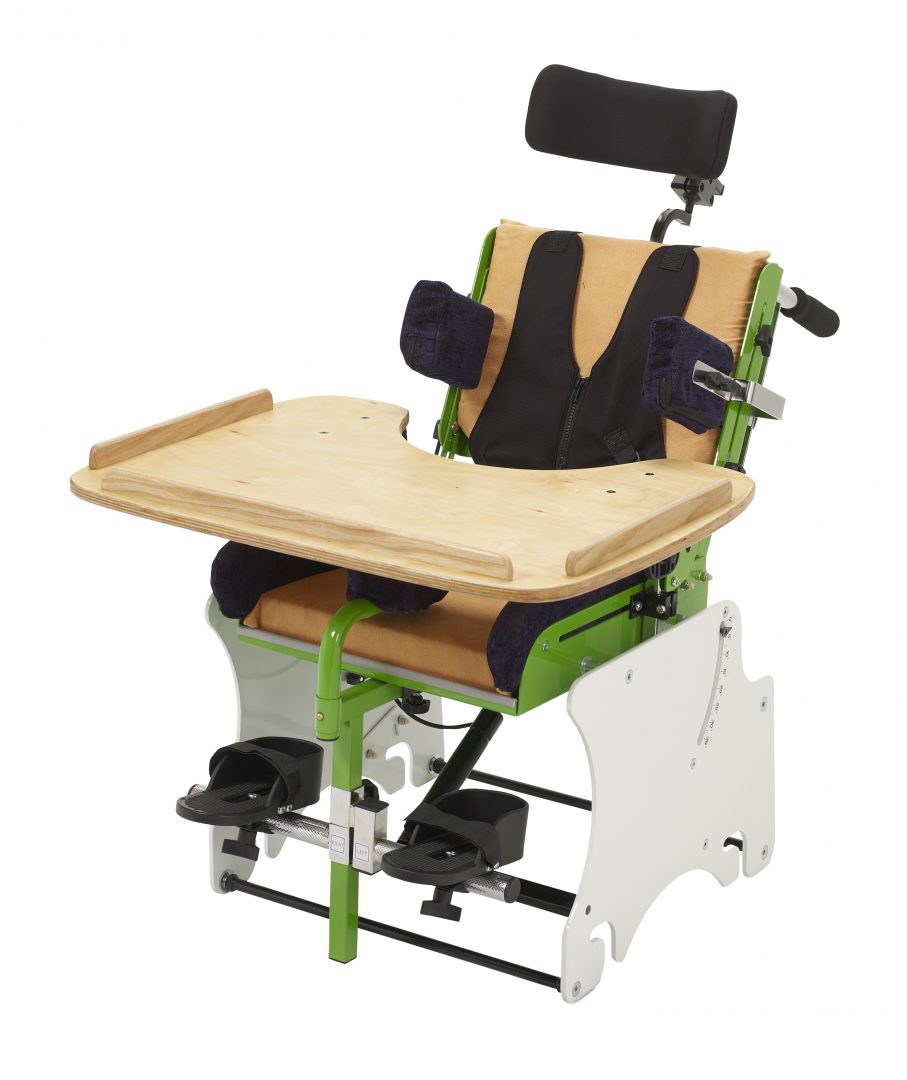 • Tray – attaches onto armrest and is height adjustable It provides trunk stabilization and an easy-to-clean surface with a safety lip It is ideal for school, play and feeding