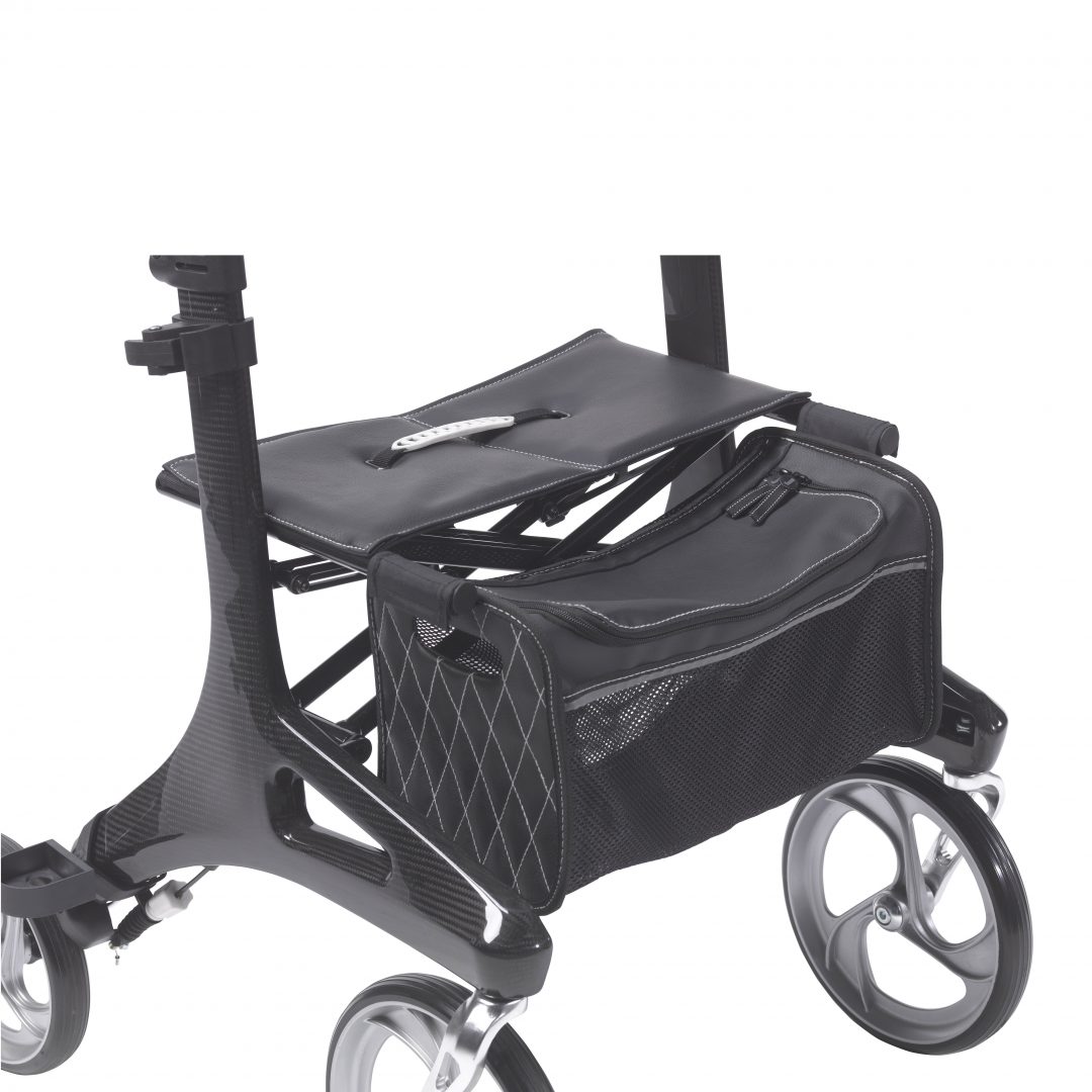 Made from extraordinarily strong and elegant carbon fiber material, the Nitro Elite CF Luxury Rollator features an unrivaled sleek design. Meticulously engineered and handcrafted with the finest materials and uncompromising attention to detail, this luxury rollator provides an elegance to complement any lifestyle. From sophisticated lever-activated brakes to effortless one-hand fold-ability, the Nitro Elite CF Luxury Rollator delivers powerful control for effortless mobility.