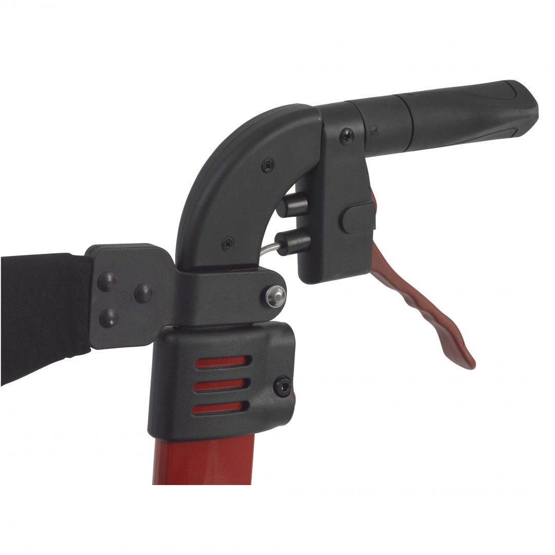 Easily collapse rollator to ultra-compact size with one hand by pulling seat grip up and bringing sides together so handles almost touch