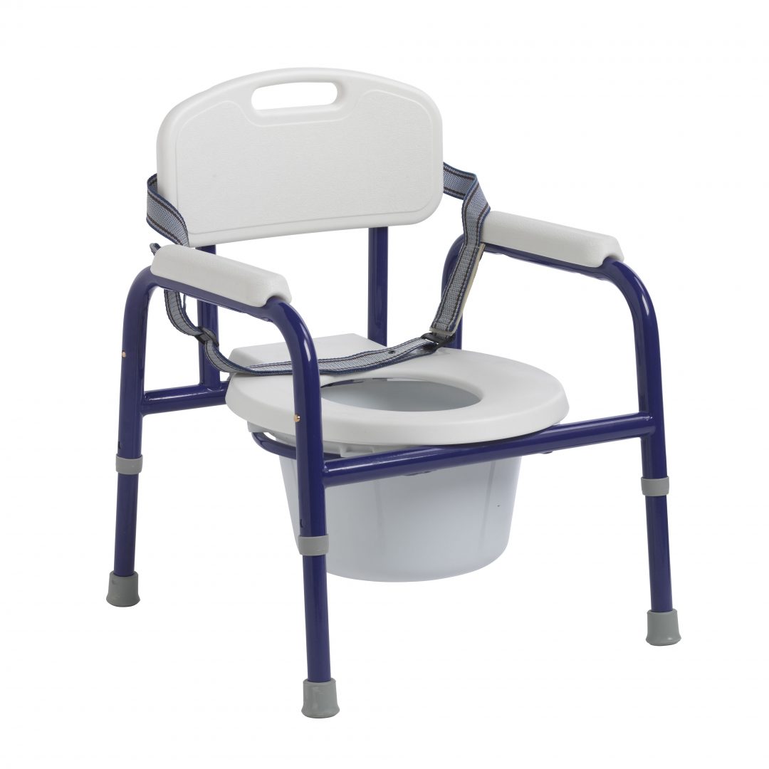 Complete with 7.5 qt removable commode bucket, metal handle, and cover