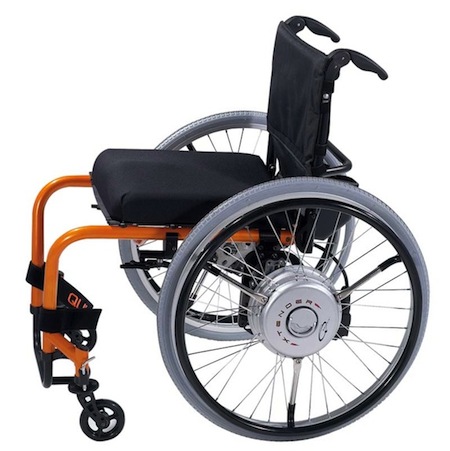 Developed by Quickie and Yamaha, the Xtender features motorized rear wheels that increase the force you apply to the handrims by four times! This increases your range of mobility by reducing energy expenditure by as much as 45% and decreasing the burn of fatigue. Research has also shown that the Xtender may help reduce or even prevent the occurrence of secondary injuries to the wrists, elbows, and shoulders including Repetitive Strain Injury.