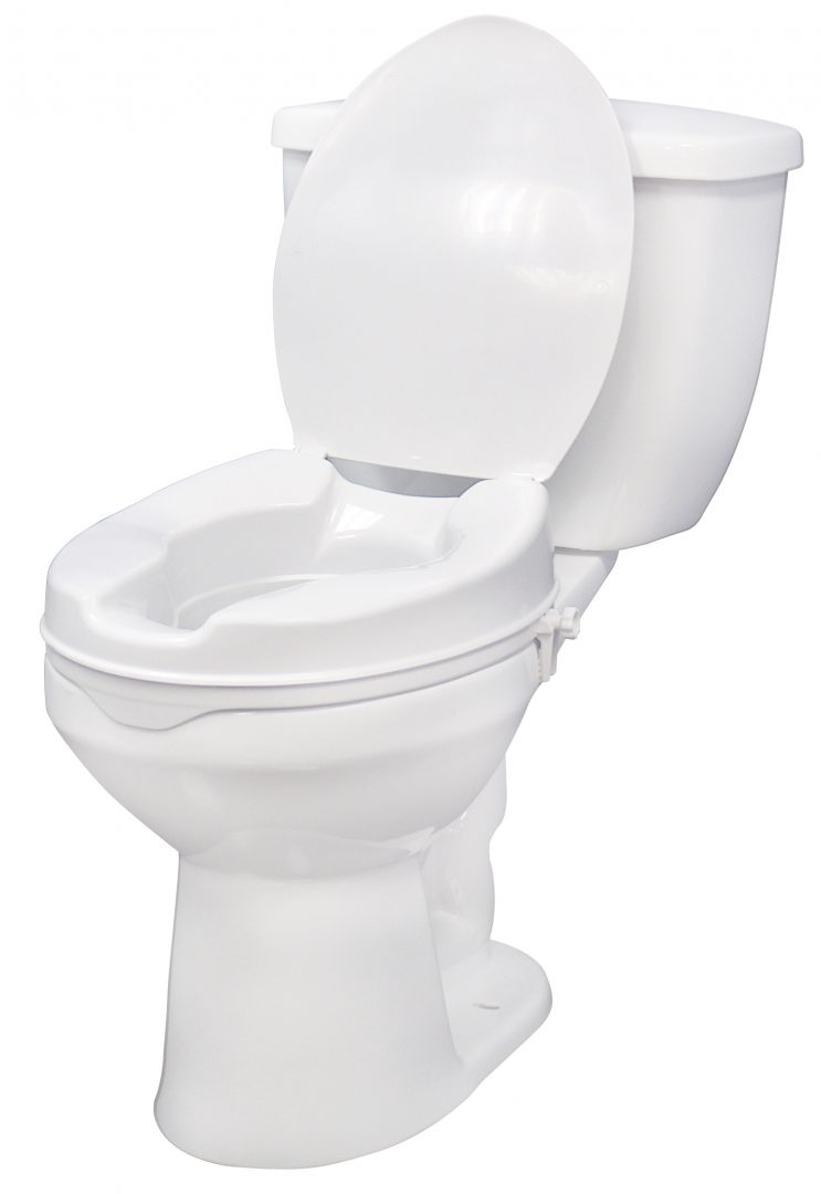 This raised toilet seat with lid by Drive Medical is designed to increase the height of your existing standard toilet seat. Available in three elevated sizes; 2″, 4″, and 6″ these models provide maximum comfort and support. It easily attaches tool-free to your toilet and locks in place using two rear locks. A pair of hygiene cutouts provide convenience and allows the product to be cleaned. The elevated seat will help individuals who need a boost sitting down or standing up from the toilet. For consumers using a wheelchair this product allows for easy transfer to and from the raised toilet seat.