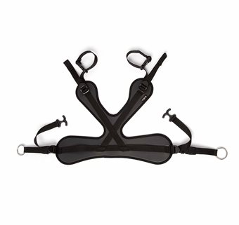 Lower the handholds and lengthen the straps to use the hip positioner as a safety sling. Raise the handholds and shorten the straps for partial weight-bearing gait training.