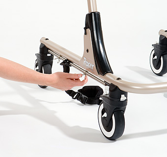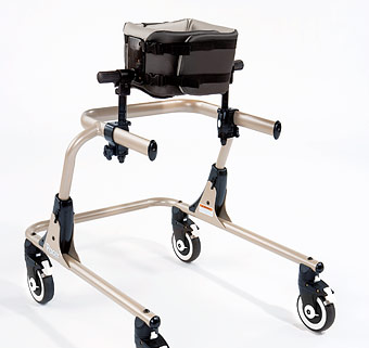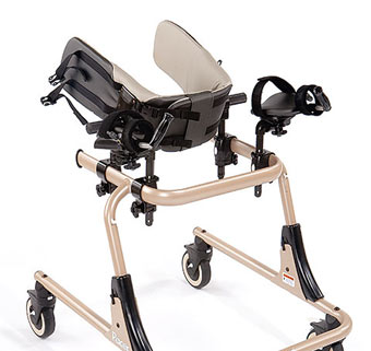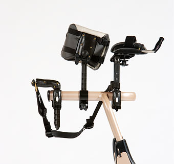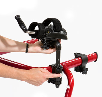 Prompts and supports – such as armrests and chest support – attach anywhere along the Pacer frame’s top bar, and are easily removed when a client no longer needs them. This feature also allows the Pacer to be easily adapted to a successive client’s needs in a school or in an institution.