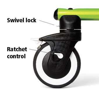 One-way ratchet control: Set each caster to prevent involuntary backward movement. Works best when casters are also swivel-locked.
