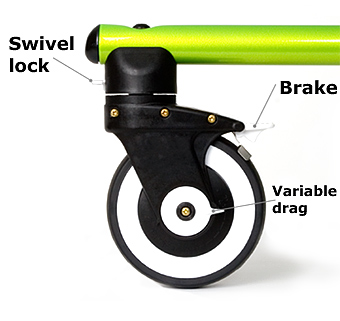 Swivel lock: Each caster swivel-locks independently. Lock all 4 to help clients walk in a straight line, or just the two rear casters to eliminate drifting sideways. Release swivel lock on all casters for movement in any direction.