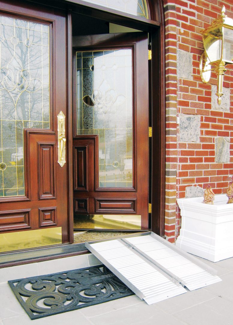 The Wheelchair and Scooter Ramp by Drive Medical is designed for transitioning a wheelchair or scooter from one surface height to another. The durable, folding, lightweight construction allows for the ramp to be easily transported in its carry bag. This ramp was especially designed with perforated slots to keep water from collecting on the ramp and ensuring users safety while in use. The ramp has a total weight capacity of 600 lbs.