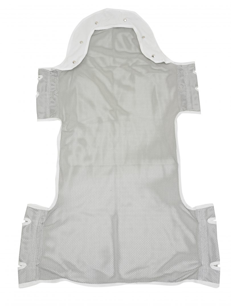 With two sling points, a head support and insert pocket, this sling by Drive Medical includes multiple features. The solid or mesh design requires straps (model #: 13232) for use, but can withstand a weight capacity of 400 pounds. The 53″ x 30″ sling includes 2 or 6 cradle points.