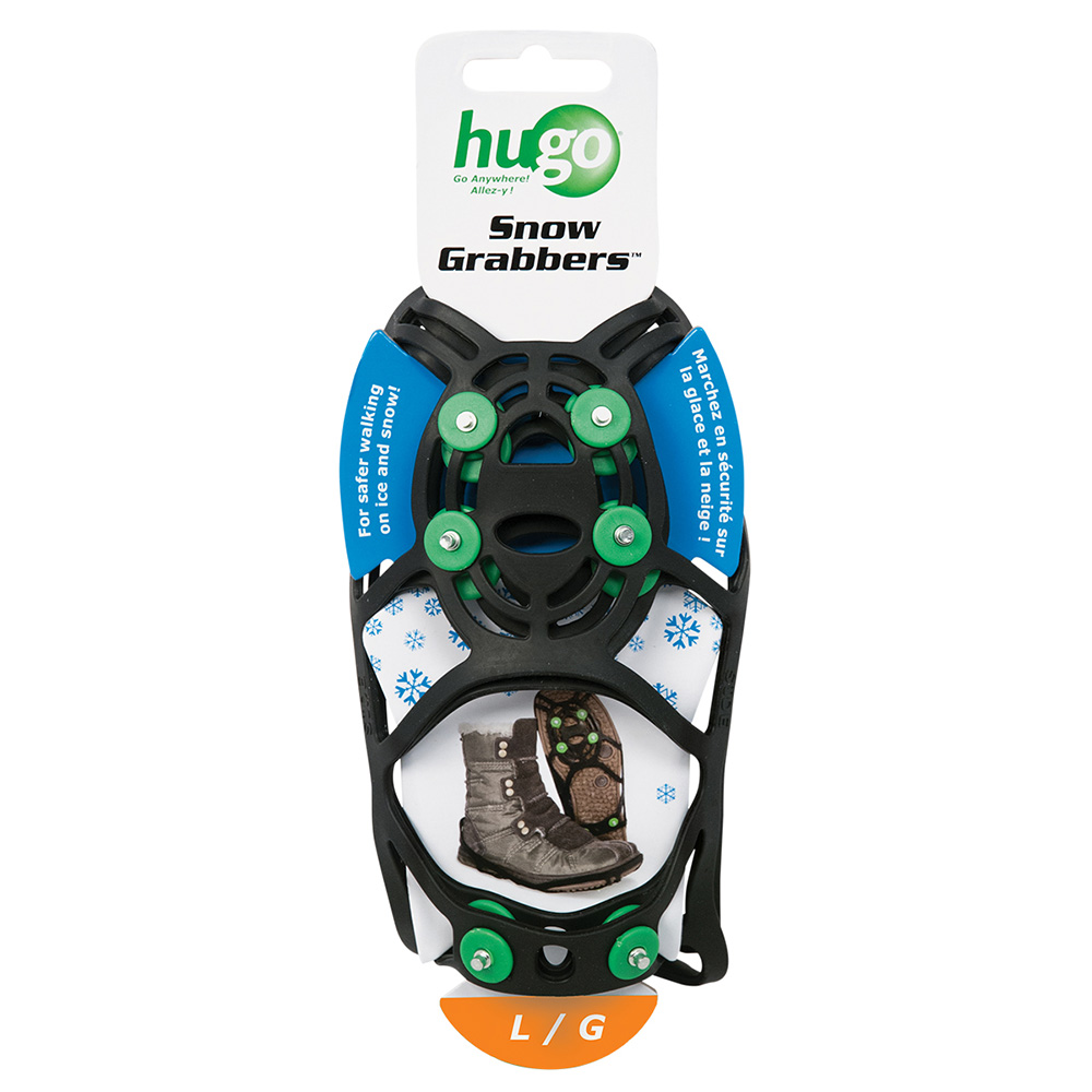 Snow Grabbers by Hugo are manufactured to provide safer walking and jogging on ice and snow. These snow and ice grippers for shoes have specially designed non-slip studs that provide excellent traction in winter conditions and help to reduce injuries and increase confidence. Hugo Snow Grabbers can be used on both shoes and boots for increased security when walking and jogging. Hugo Snow Grabbers are available in medium, large, and extra large sizes.