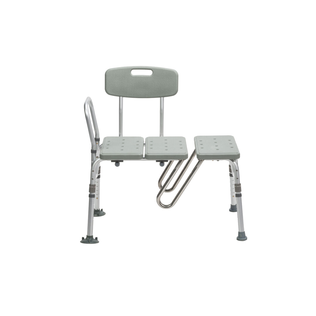 Transfer benches provide stability to an individual with limited balance and mobility allowing an individual to bathe comfortably and safely. While transfer benches today offer support and stability, water from the shower can spill out onto the bathroom floor putting both the user and care taker at risk of slips and falls. Shower curtain liners are displaced outside the bathtub as the transfer bench hinders it from catching water and keeping it inside the tub. Drive DeVilbiss continues to enhance the quality of life by introducing the new Splash Defenseâ„¢ Transfer Bench! The Splash Defenseâ„¢ Transfer Bench is unique and the first of its kind allowing your shower curtain liner to remain inside the bath tub. This product enhancement meets the needs of so many by helping eliminate water from spilling out onto the bathroom floor, creating a danger zone for not only the user but also for the care taker. The Splash Defenseâ„¢ transfer bench provides security for the care taker, while giving an individual their independence back and allowing them to bathe safely and privately again!