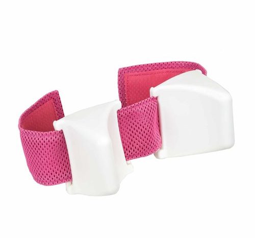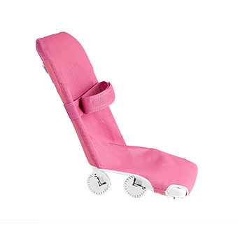 The soft plastic head blocks are on a strap that can be positioned at any height on the back rest. Aside from providing positioning support for clients with poor head control, head blocks can also give the client a feeling of security.