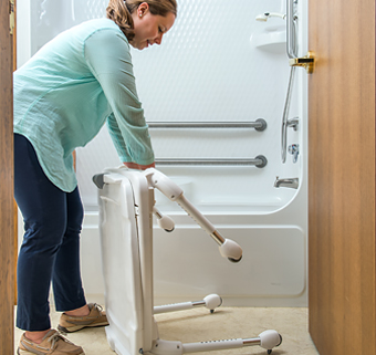 Rifton’s folding storable tub transfer base makes it possible for everyone in the family to use the tub.