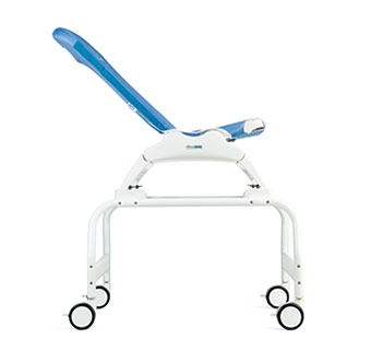 The shower stand allows you to roll your client into the shower stall at a height that enables better cleaning – and saves your back. It can be used with any of the three chair sizes and has rugged, smooth rolling, locking 4″ casters. Quick-release locks on the stand allow easy attachment and removal of chair.