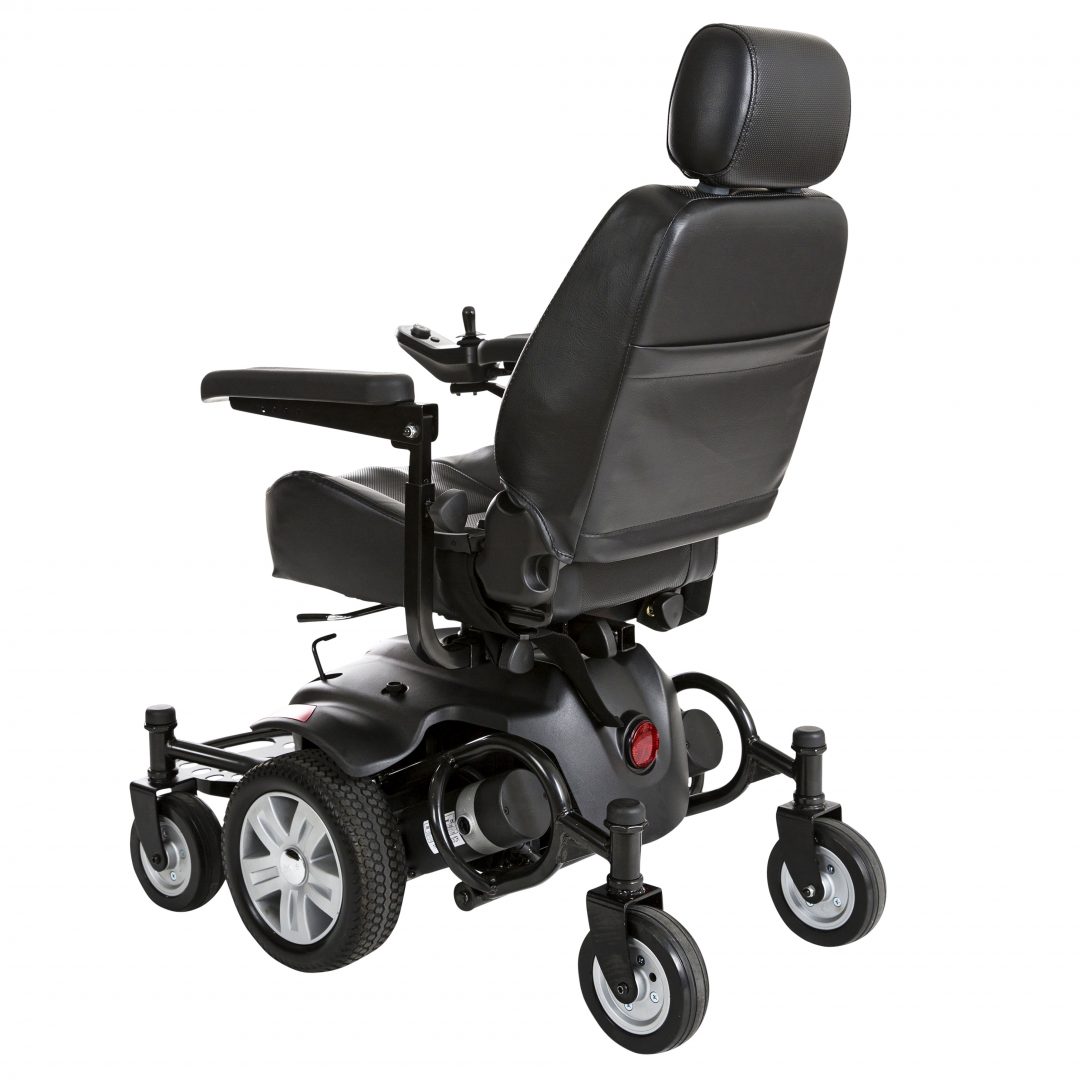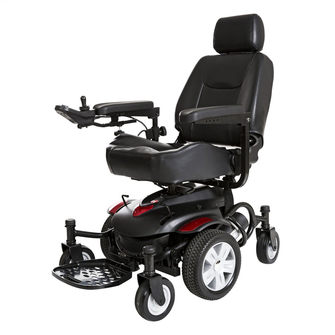 The Drive Medical Titan AXS Mid-Wheel Power Wheelchair offers a comfortable and stylish ride for users seeking unparalleled maneuverability on an exceptionally stable platform. The Titan AXS power wheelchair drive design allows you to turn on a dime with drive-wheels located directly under user, and a unique frame crafted to keep all 6 wheels on the ground at all times for superior stability. The Titan AXS power wheelchair is ideal for indoor use, navigating tight, enclosed spaces with ease. Choose from a variety of captain’s seats available in 16″ – 22″ widths, and customize it to your liking with interchangeable color panels in red and blue included with every unit.