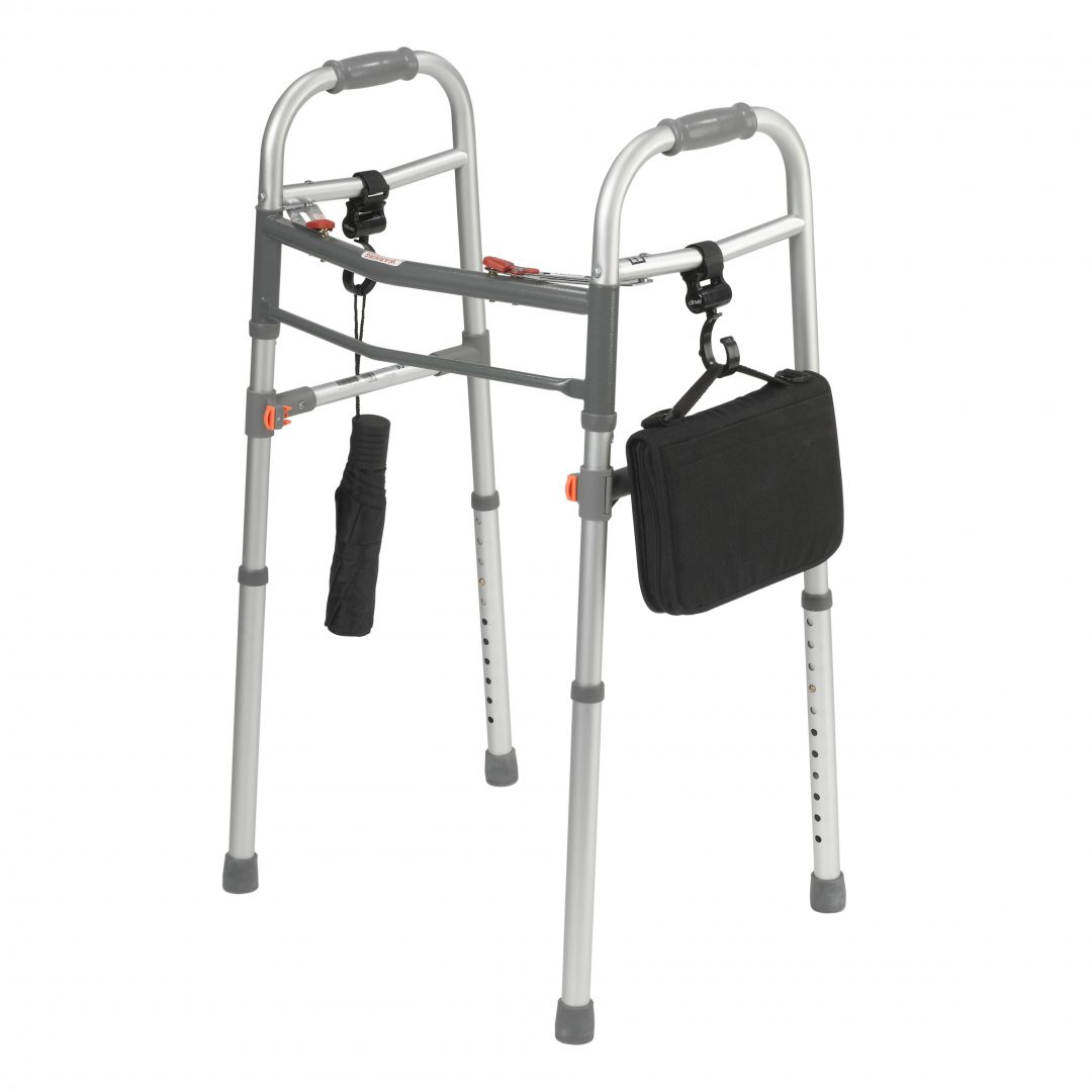 • Accessory hooks make operating a rollator, walker, or wheelchair easier and safer by keeping user hands free.