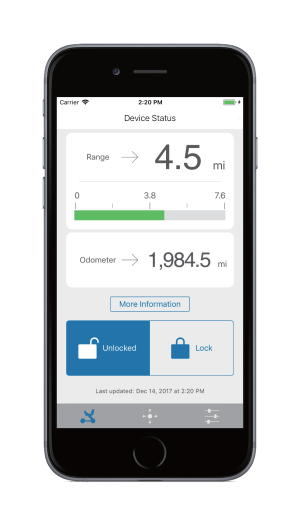 Use the iPhone and Android* app to remotely drive Model Ci, lock/unlock to keep it secure, and choose a drive mode that’s right for you. Also, access key device information and battery health to ensure your Model Ci is operating at its best.